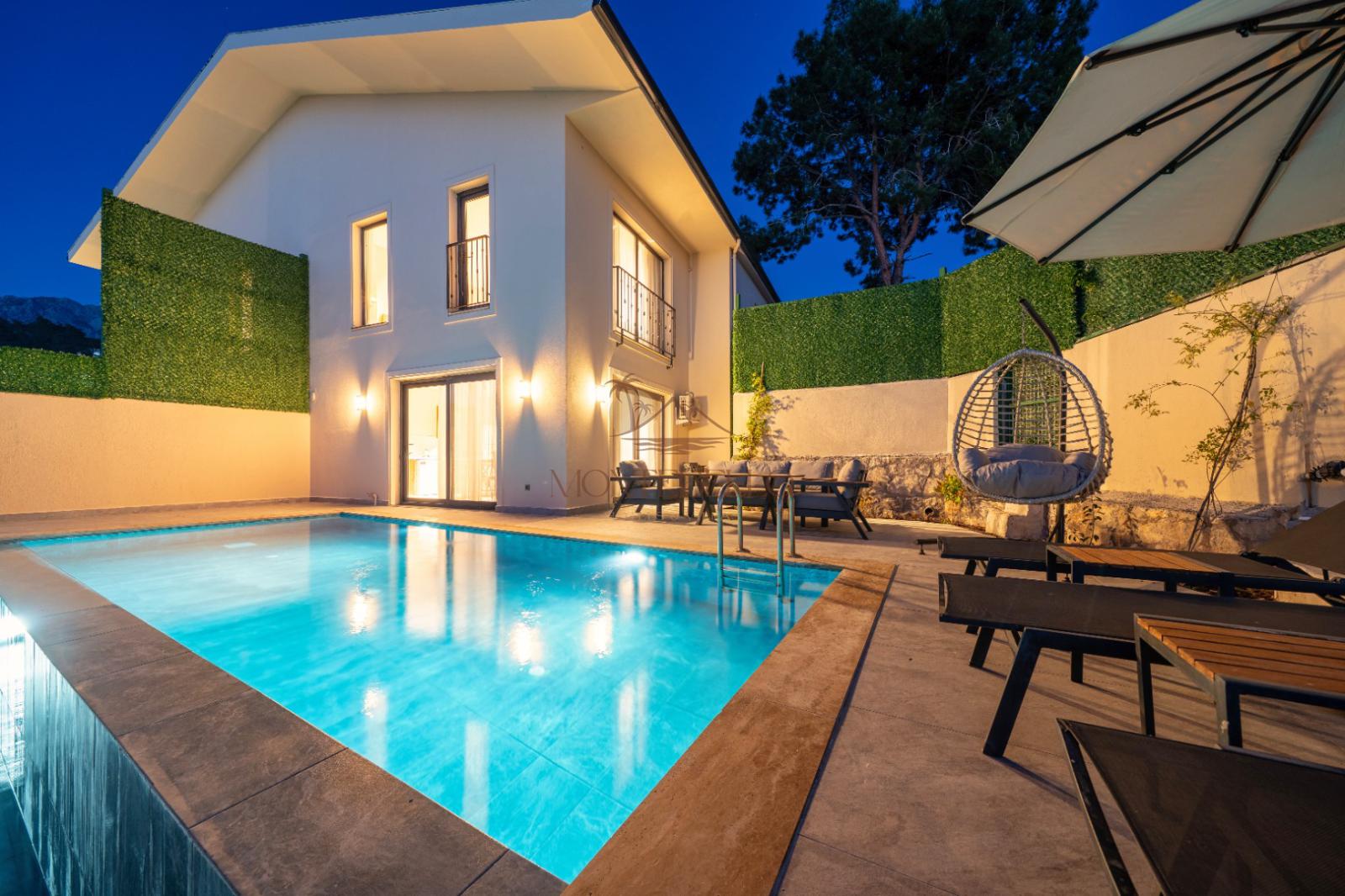 Yapımı 2025 yılında tamamlanmış villa yan yana 16 adet 1+1 ve 2+1 olarak aynı özelliklere sahip villadan oluşmaktadır. Birlikte tatil yapmak isteyen balayı çiftleri ve çekirdek aileler için oldukça uygundur. Villamız kaliteli ve modern eşyalarla dizayn edilmiş olup kendinizi evinizde hissedebileceğiz bütün araç gereçlerle donatılmıştır.
